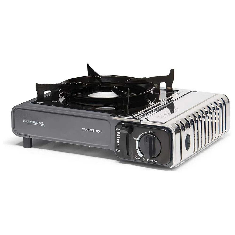 Die letzte Version der Campingaz-Erfolgsgeschichte, der Camp’Bistro 3, mit 2 integrierten Sicherheitssystemen, einer Kartuschenabdeckung aus Edelstahl und einer verbesserten Pfannenhalterung, die Stabilität und eine sichere Verwendung des Kochers gewährleisten. Dieser robuste Kocher wird mit einer eigenen Hartplastik-Tragetasche für einfachen Transport und Aufbewahrung geliefert.