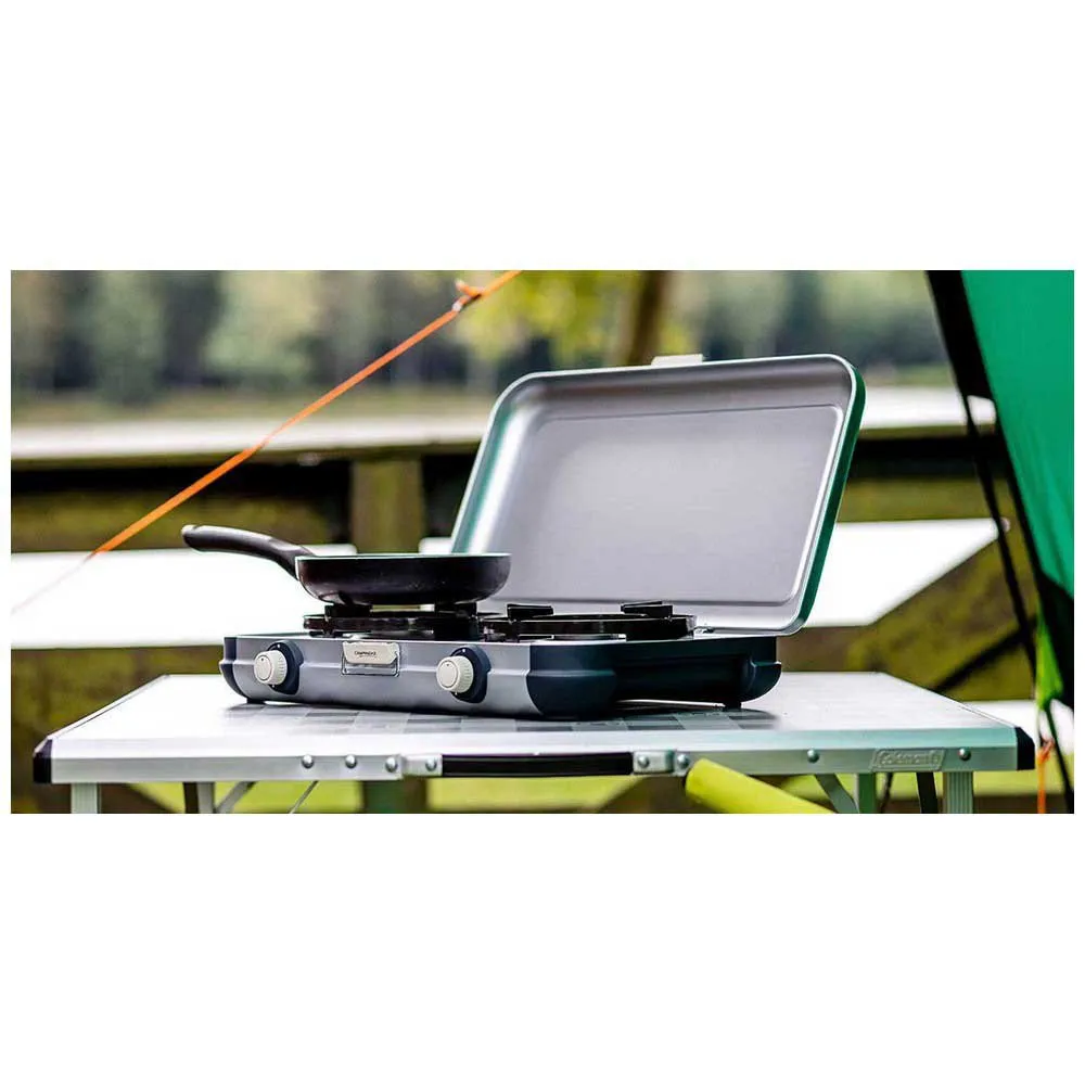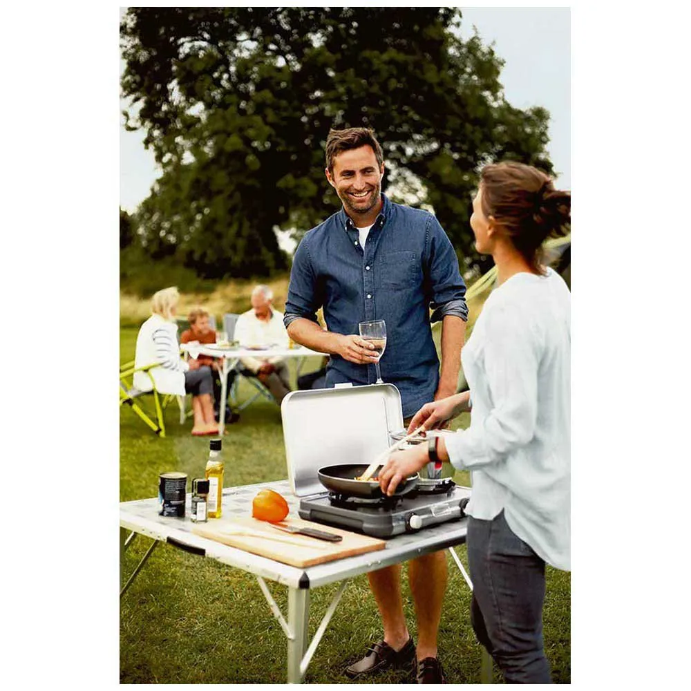 Der Camping Kitchen® 2 ist der perfekte Begleiter für jeden Familienausflug, entweder für ein kurzes Wochenende oder für einen längeren Aufenthalt. Es ist ein leichter und leicht tragbarer Zwei-Flammen-Ofen. Das schlanke Design mit integriertem Tragegriff sorgt für Platzersparnis beim Packen Ihres Autos oder Wohnwagens.