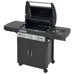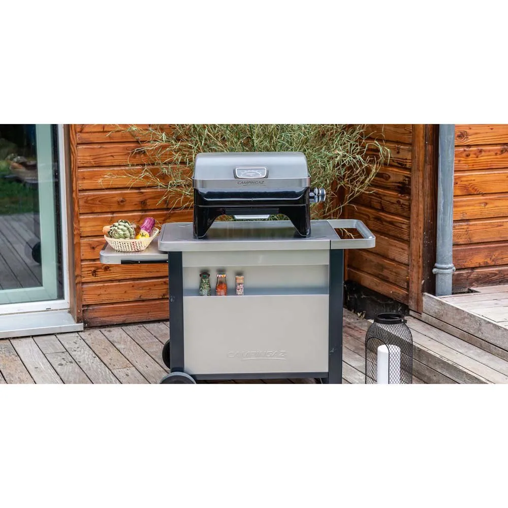 Der Deluxe Trolley ist perfekt für Familien oder Gruppen, die das Essen im Freien genießen möchten. Es bietet stabilen Halt für alle Attitude-Grills sowie 2-Brenner Blue Flame und Master Planchas.
