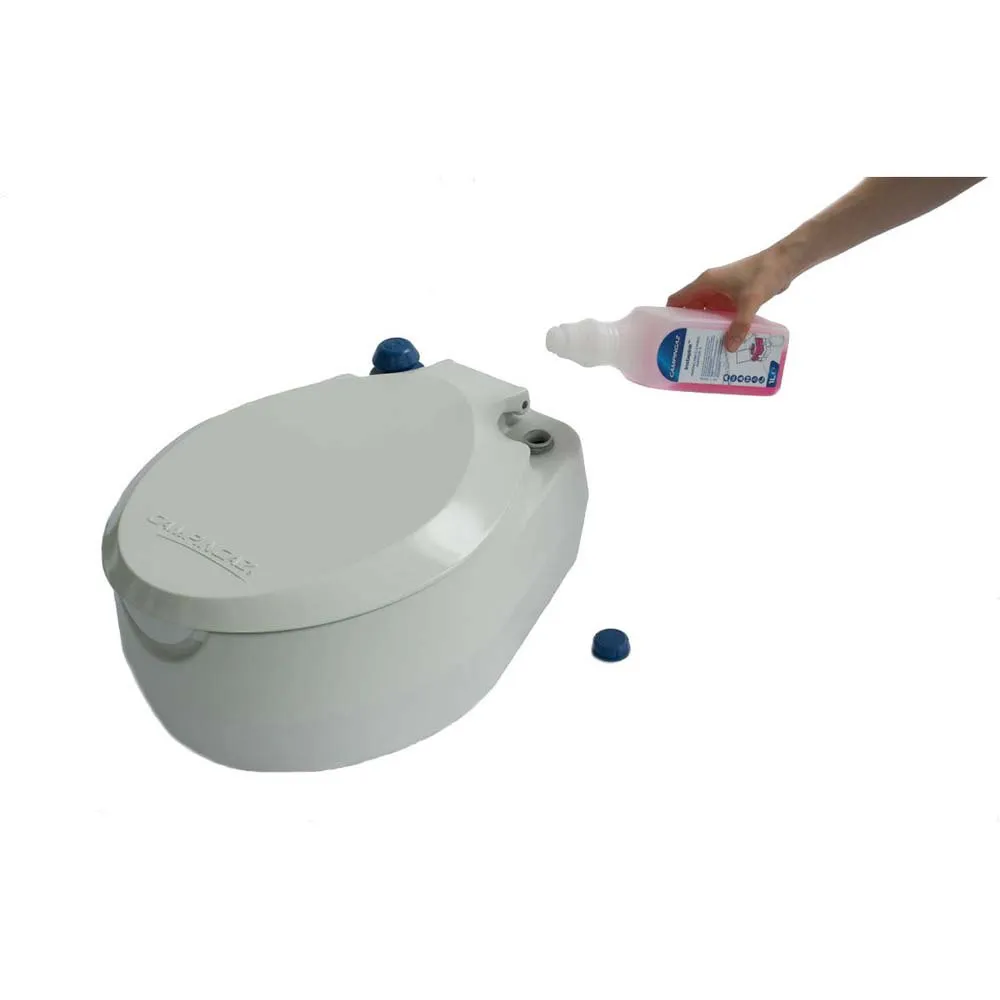 Kraftvoller, biologisch abbaubarer Reiniger Instapink™ 1L zur Anwendung im Frischwassertank oder direkt im Napf. Es verhindert auch die Bildung von Schmutzflecken und Ablagerungen von hartem Wasser in der Schüssel.