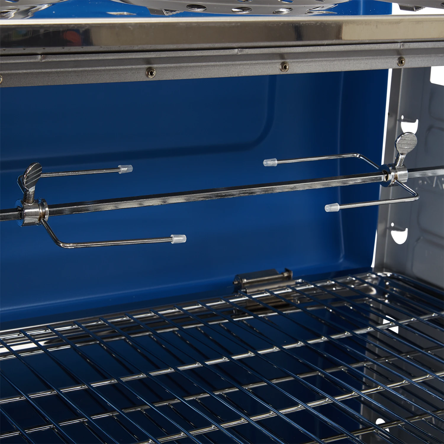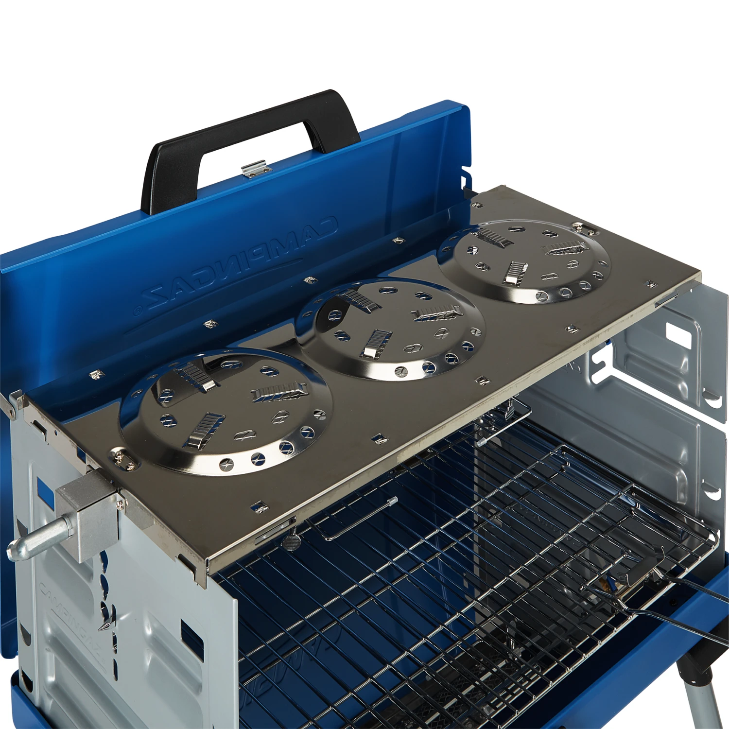Mit diesem praktischen Koffergasgrill 200 SGR nehmen Sie den Grillspaß einfach mit und können im Park oder im Garten Ihre Lieblingsspeisen zubereiten. Das Gerät verfügt über einen Drehspieß (ohne Motor) und eine Fettauffangschale, die problemlos in der Spülmaschine gereinigt werden kann. Auf der Herdplatte, am Spieß oder auf dem Grillrost lassen sich diverse Speisen ganz leicht zubereiten. Der besondere Clou ist die mobile Funktion. Der Grill kann vollständig im robusten Metallkoffer verstaut und dadurch problemlos transportiert werden.