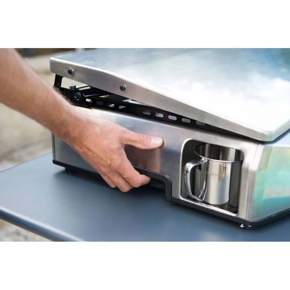 Mit einer luxuriösen Edelstahlkonstruktion hat die Master Plancha EX einen integrierten Deckel, der Wind abschirmt und die Kochfläche schützt, wenn sie nicht verwendet wird. Verstellbare Beine machen es einfach, die Höhe des Grills an Ihre Umgebung anzupassen. Wenn Sie mit dem Kochen fertig sind, wurde die Master Plancha EX für eine einfache Reinigung mit einer abnehmbaren Fettschale entwickelt, die in der Spülmaschine gewaschen werden kann.
