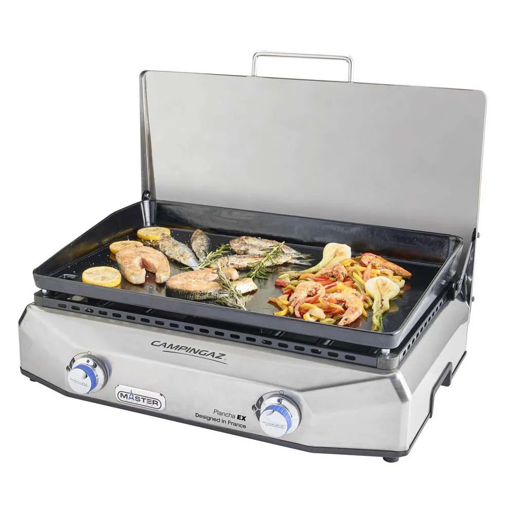 Die Master Plancha EX kombiniert die neueste Brennertechnologie mit intelligenten Funktionen, um den ultimativen Plancha-Kochkomfort zu bieten. Seine glatte Kochfläche ist ideal zum Garen einer Reihe von Gerichten, insbesondere von zerbrechlichem Gemüse, Fleisch und Fisch.