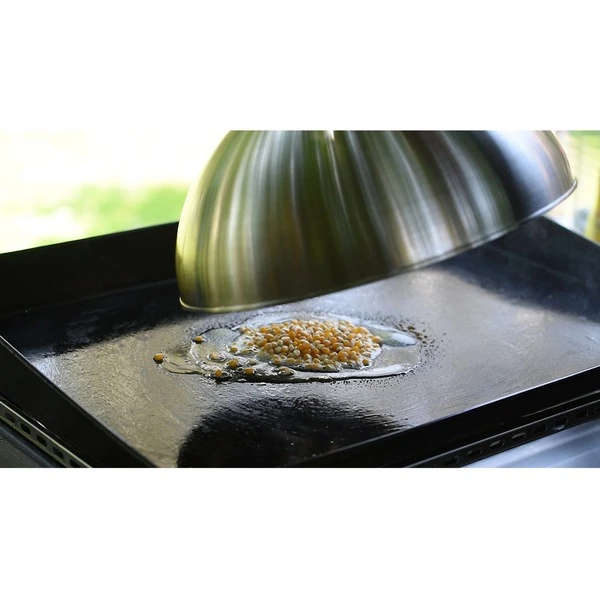Die Premium Plancha Garhaube von Campingaz sorgt für gleichmäßigen Geschmack und Rundum-Hitze. Sie ist z.B. ideal zum Dampfgaren geeignet. Dampfgaren ist eine sanfte Zubereitungsart, bei der das Gericht seine Feuchtigkeit behält. Der kugelförmige Deckel konzentriert die Hitze zum Schmelzen von Käse, zum Garen von Gemüse mit Dampf und für viele andere Zubereitungsmöglichkeiten. Die Premium Plancha Garhaube ist eine perfekte Ergänzung zur Outdoor-Küche, ideal für Steaks, Grillsandwiches, Burger-Patties und vieles mehr. Oder man verwendet sie zusammen mit einem Pizzastein zum Backen einer selbstgemachten Pizza. Sie erzeugt eine Umgebung ähnlich wie in einem Ofen. Die Premium Plancha Garhaube kann auch verwendet werden, um das Essen warm zu halten.Art.-Nr.: 1603342